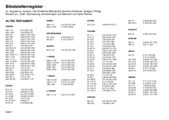 ZurückBibelstellenregister zu: Augustinus, Aurelius. Die Christliche Bildung (De doctrina christiana). Stuttgart: Philipp Recalm jun., 2002.