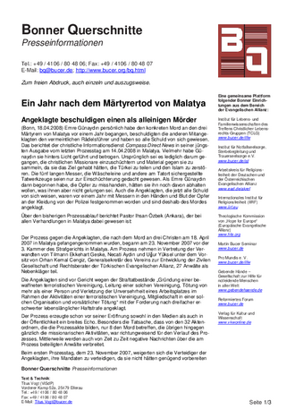 ZurückEin Jahr nach dem Märtyrertod von Malatya