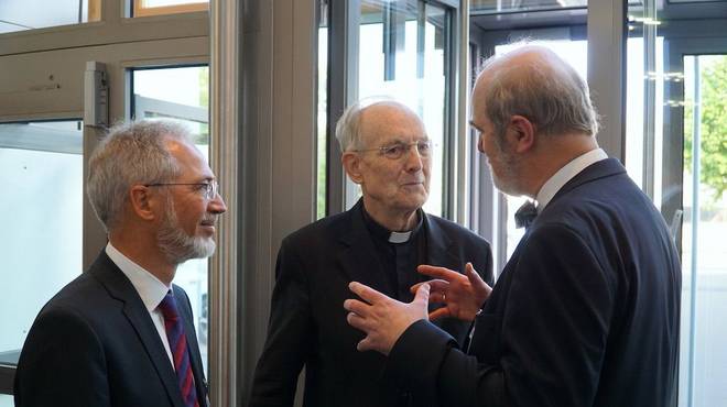 Foto 19: Christof Sauer und Thomas Schirrmacher im Gespräch mit Prälat Prof. Dr. Helmut Moll © Martin Warnecke/IIRF
