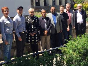 Foto: Die Leitung der Weltweiten Evangelischen Allianz (v.l.n.r.): Generalsekretär Bischof Efraim Tendero (4), die vier stellvertretenden Generalsekretäre Amanda Jackson (Australien, 1), Christine MacMillan (Kanada, 3), Godfrey Yogaraja (Sri Lanka, 5), Thomas Schirrmacher (Deutschland, 8), die drei Verwaltungsdirektoren Christopher Chou (Taiwan, 2), Timothy K. Goropevsek (6) und Rob Brynjolfson (7) © WEA