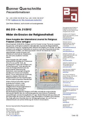 BQ 196 â Nr 02/2012: Das Internationale Journal für Religionsfreiheit wurde akkreditiert.