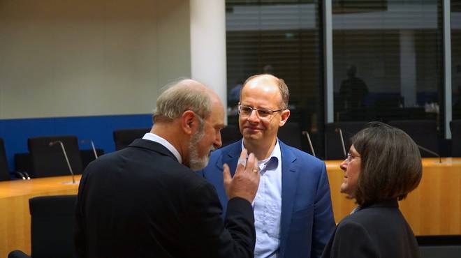 Foto 5: Prof. Thomas Schirrmacher im Gespräch mit Prof. Michael Brandt, MdB © BQ/Warnecke- Diese Meldung sowie die dazugehörige Videoaufnahme der Anhörung auf der Internetseite des Deutschen Bundestages: