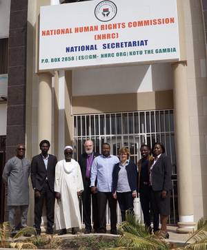 - Foto 1: Thomas und Christine Schirrmacher mit Mitgliedern der Nationalen Menschenrechtskommission von Gambia und ihrem Vorsitzenden, Emmanuel Daniel Joof © BQ/Martin Warnecke